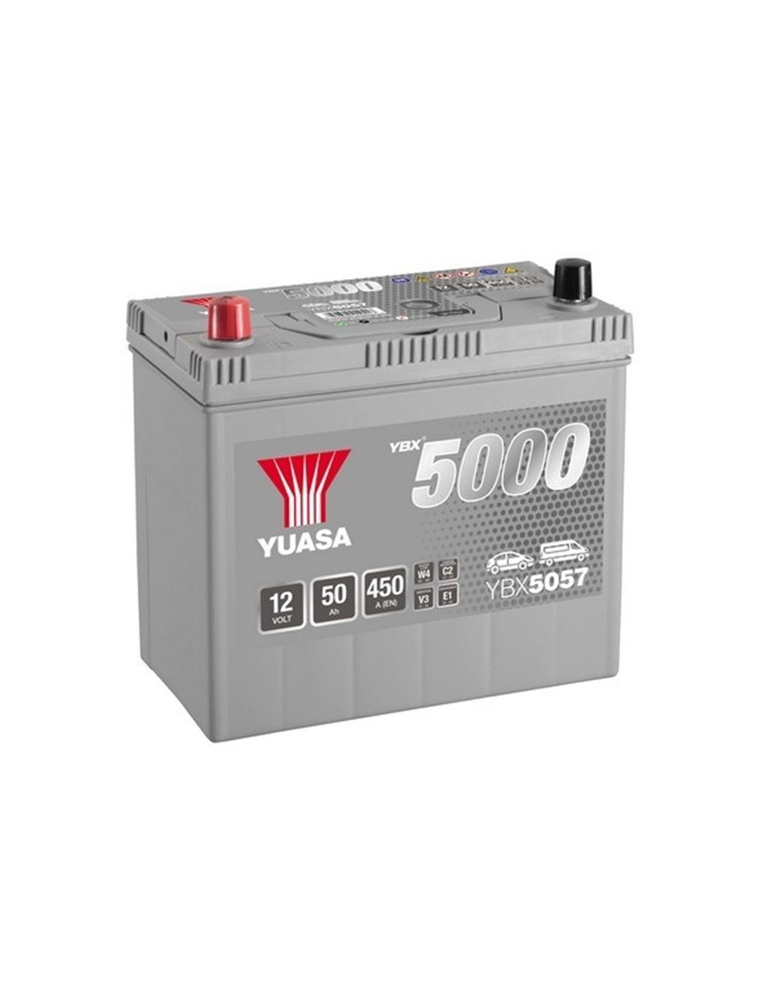 YUASA 5000 SILVER ASIA 12V 50Ah 450A - Borna Inversa (stanga +)
