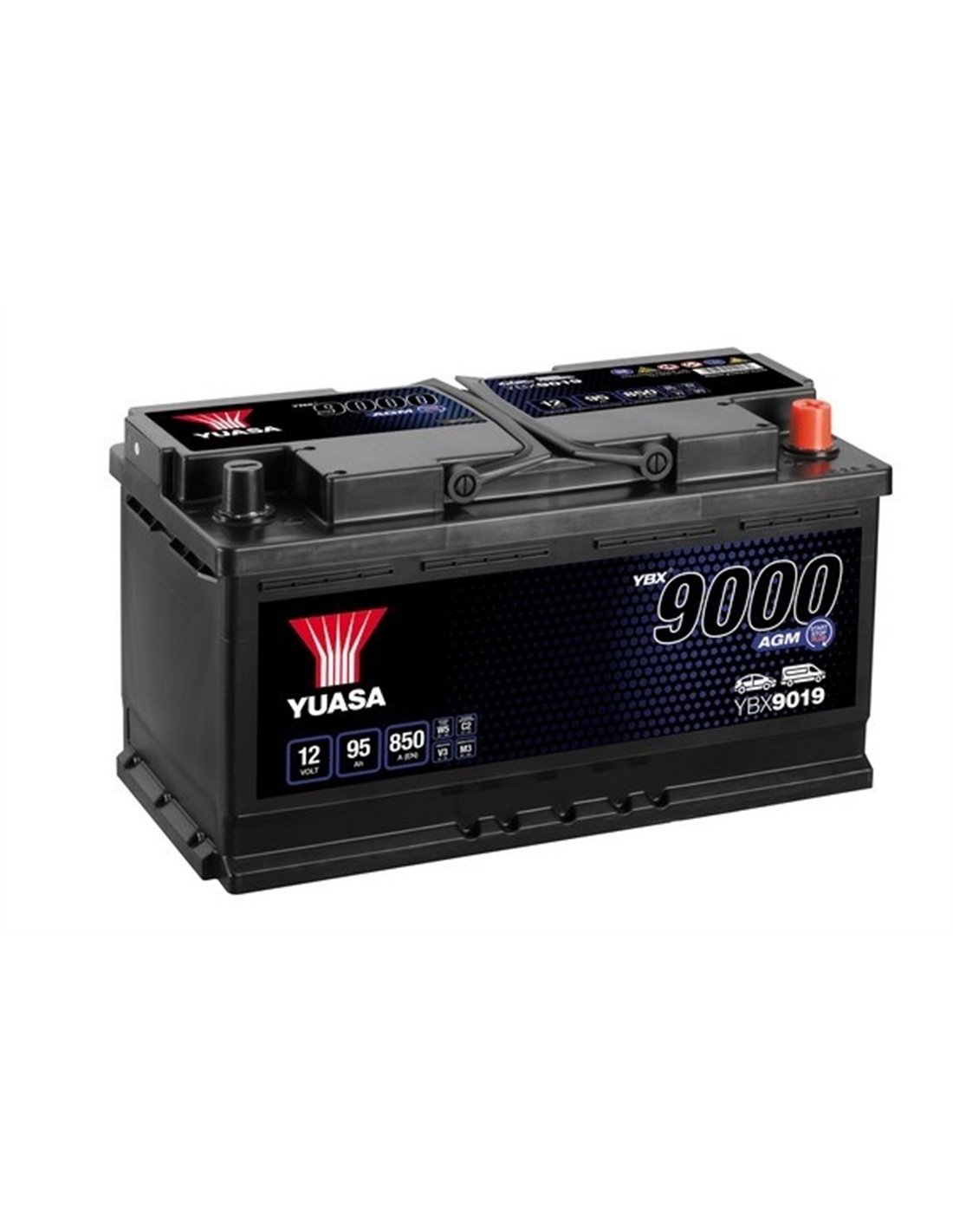 YUASA 9000 AGM 12V 95Ah 850A - Borna Normala (dreapta +)